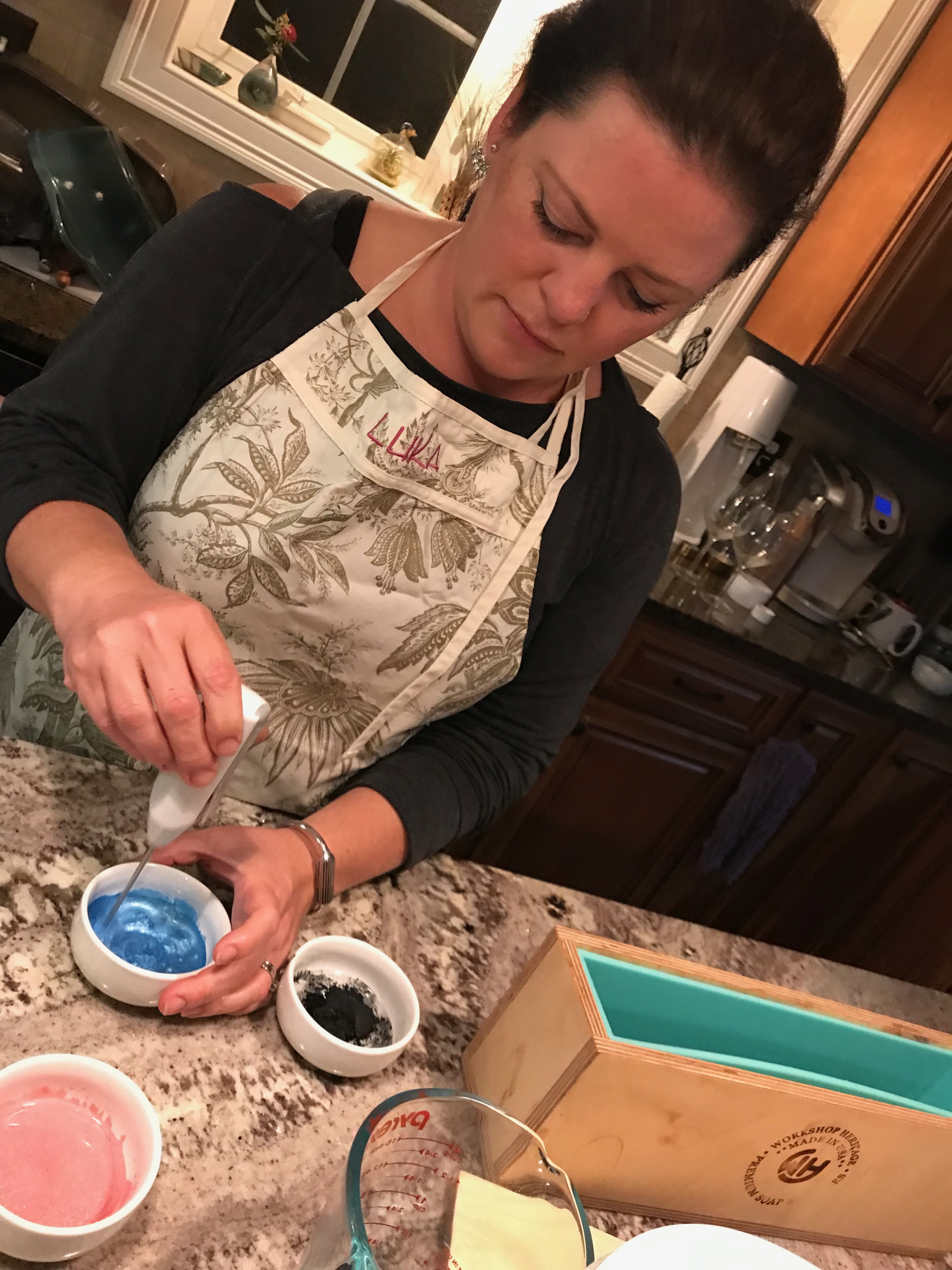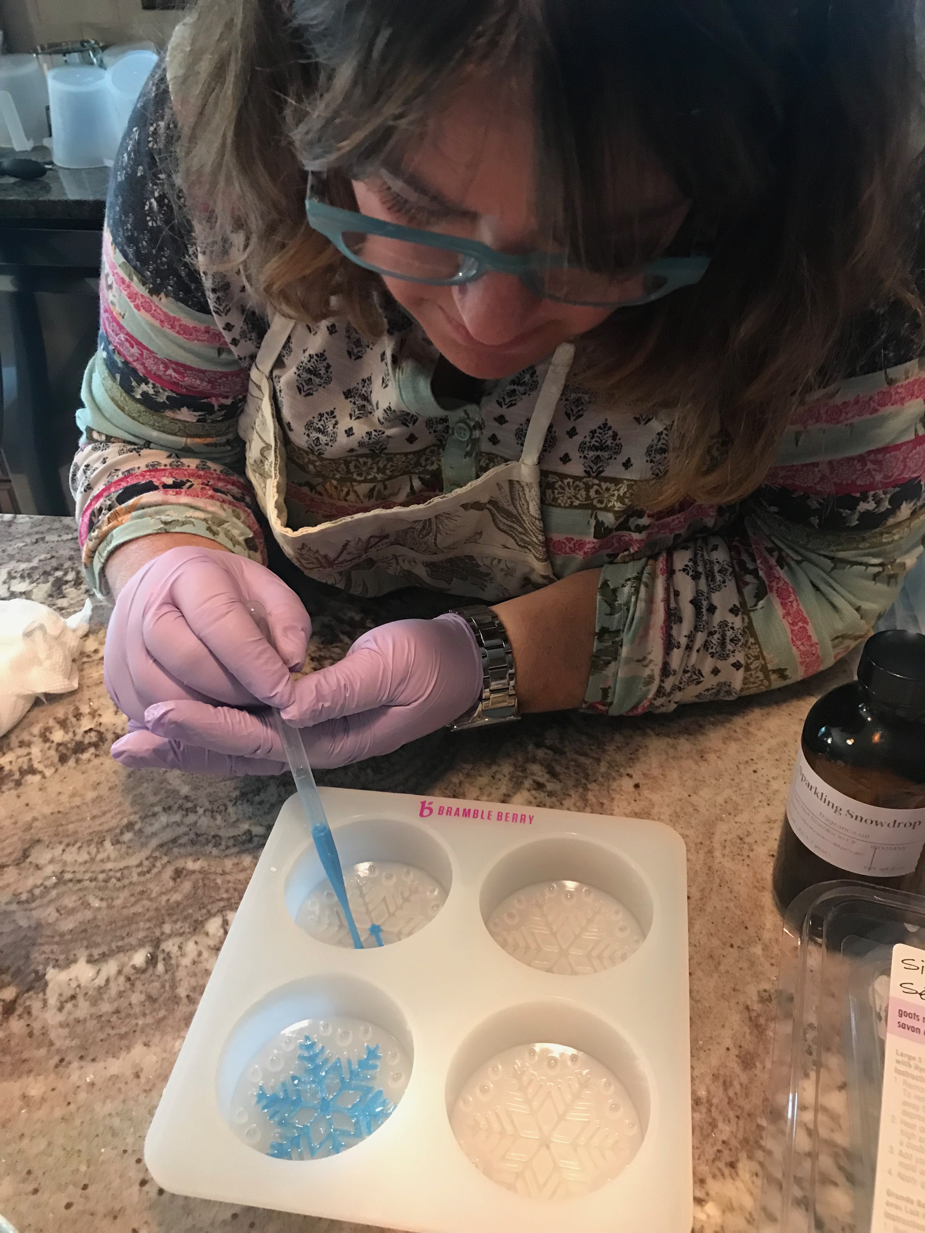In the soap studio, known as my kitchen in Connecticut, when friends and or family get together, it’s always a good time when soap is involved! Whether it is soap making, designing, cutting, or stamping, it is all part of the process.